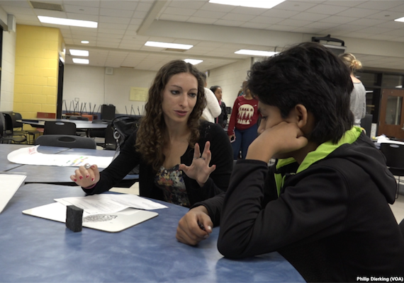 Higher Achievement students do homework, have community meetings, and work one-on-one with a mentor.