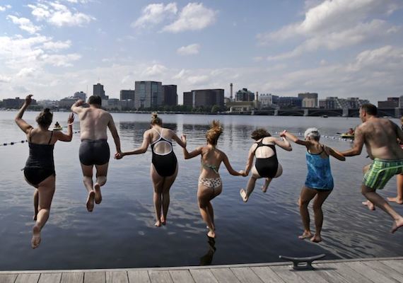 People jump into the Charles River during the “City Splash” event.