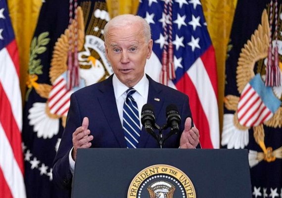President Joe Biden speaks during a news conference in the East Room of the White House