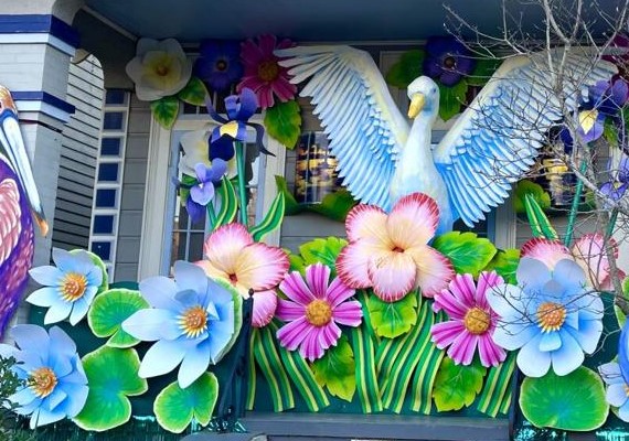 A house decorated like a parade float in New Orleans for Mardi Gras