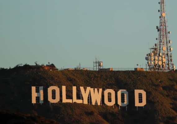 A banner with representations of the Lebanese flag hangs on a damaged building