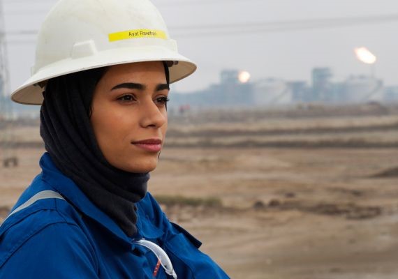 Ayat Rawthan is a petrochemical engineer and one of the few women working at an oil field outside Basra, Iraq.