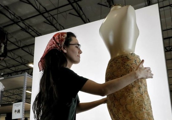 Samantha Estes prepares garments to be photographed at the ThredUp sorting facility