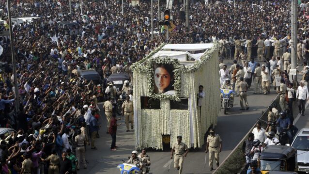 Thousands of mourning fans paid their respects Wednesday to one of Bollywood’s biggest stars, Sridevi Kapoor.