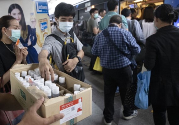 Commuters wearing face masks