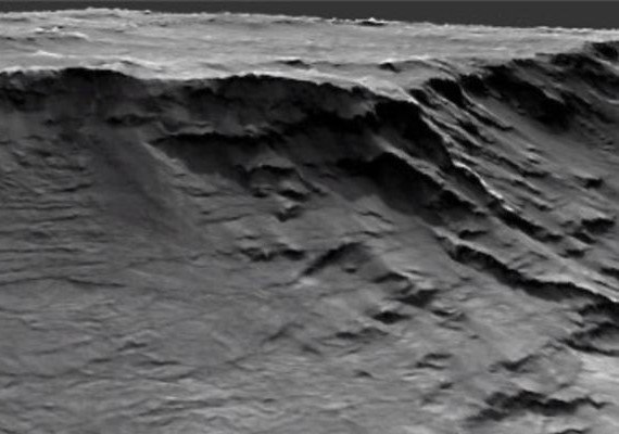 Geological formations are seen in sedimentary rock in the Hellas Basin on Mars