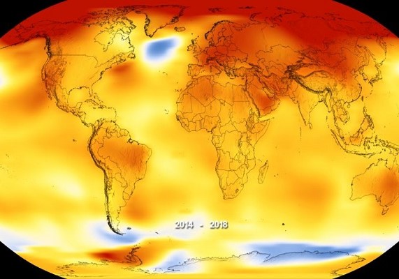 Global surface temperature anomalies for 2014-2018